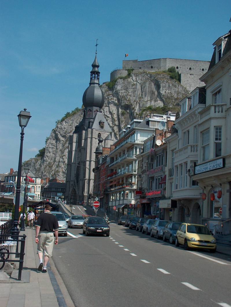 Ook Dinant is gelegen aan de Maas in de provincie Namen en is een levendig, toeristisch plaatsje. Hoewel Dinant niet groot is, wordt het vaak tot de belangrijkste en mooiste stadjes van de Ardennen genoemd. Een ding is zeker, er zijn weinig plaatsen in de Ardennen met zo’n karakteristiek uiterlijk als Dinant. Alleen die skyline al: hoge herenhuizen, hogere kerk, nog hogere rotswanden en daar bovenop de citadel. Reden genoeg om naar het stadje aan de Maas af te reizen. De stad ligt langs beide Maasoevers en de Citadel torent hoog boven de stad uit. Kenmerkend voor het stadje is de rots Bayard, een rotspunt met de vorm van een enorme menhir die net los staat van de rotswand. Slechts één rijstrook van de weg langs de Maas loopt tussen Bayard en de bergwand, de andere rijrichting is om de 'menhir' heen.