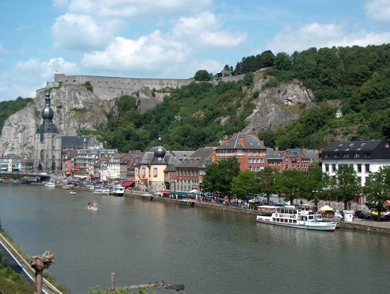 In de omgeving van Dinant is de Maasvallei misschien wel op zijn mooist met forten, kastelen en steile rotswanden die geliefd zijn bij klimmers.