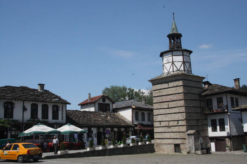 Op zo'n 40km afstand van Veliko Tarnova ligt het stadje Trjavna. Met de taxi arriveren we in het kleurrijke stadje op het centrale plein met de mooie klokkentoren.