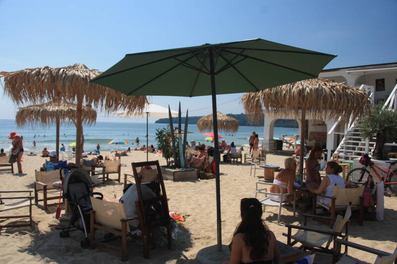Vanuit Varna koersen we met de bus richting Burgas, waar het volgende zonnige strand op ons wacht. Slantsjev Brjag, maar zelfs de Bulgaren zelf noemen het lange zandstrand Sunny Beach. Het Zonnestrand heeft maar weinig vaste inwoners, maar des te meer toeristen, jaarlijks verblijven er meer dan een miljoen. Sinds 2000 is er veel geïnvesteerd in de algemene voorzieningen en veiligheid in de regio. Mede hierdoor is het stadje van haar schimmige imago afgekomen. Daarnaast zijn veel hotels in deze periode gerenoveerd of nieuw gebouwd. De badplaats is vooral geliefd onder jongeren vanwege het relatief goedkope drinken, eten en uitgaan.