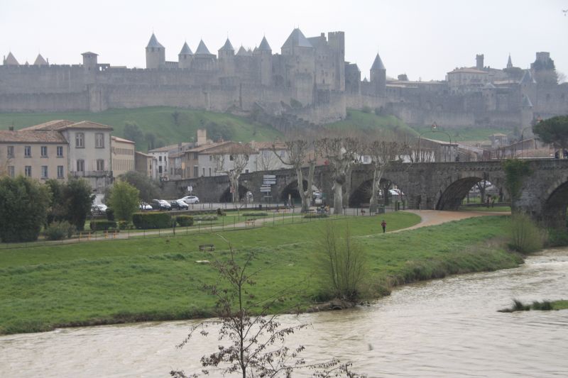 Een voetgangersbrug over de Aude, genaamd Pont Vieux, verbindt samen met een grotere nieuwe brug de oude Cité en de nieuwe stad met elkaar.