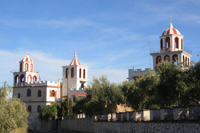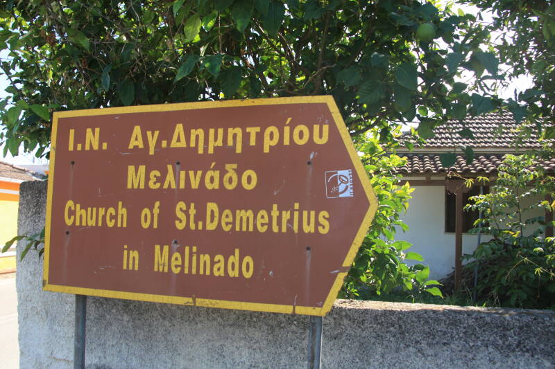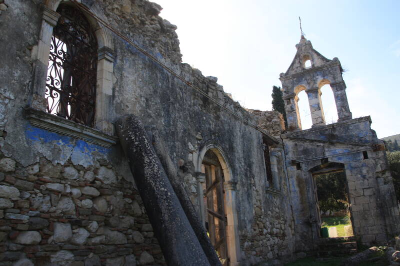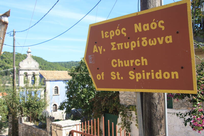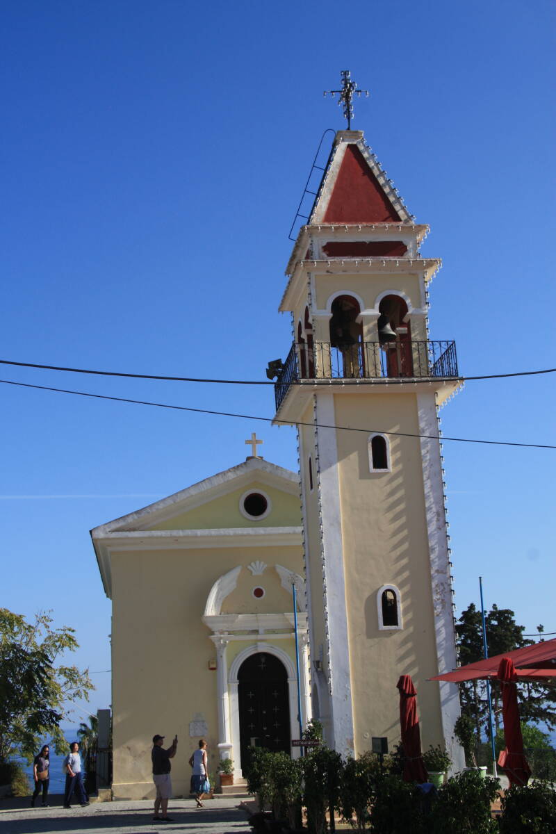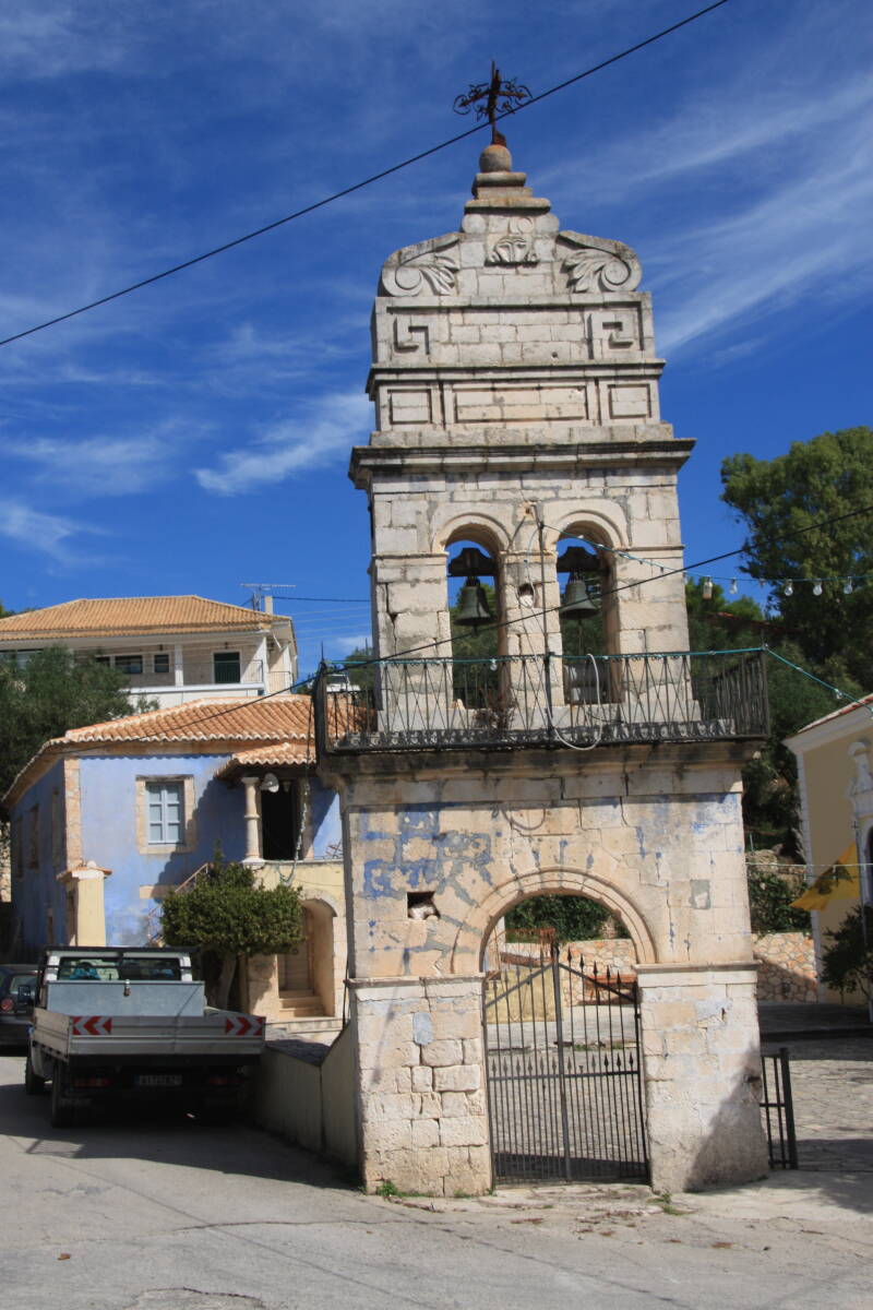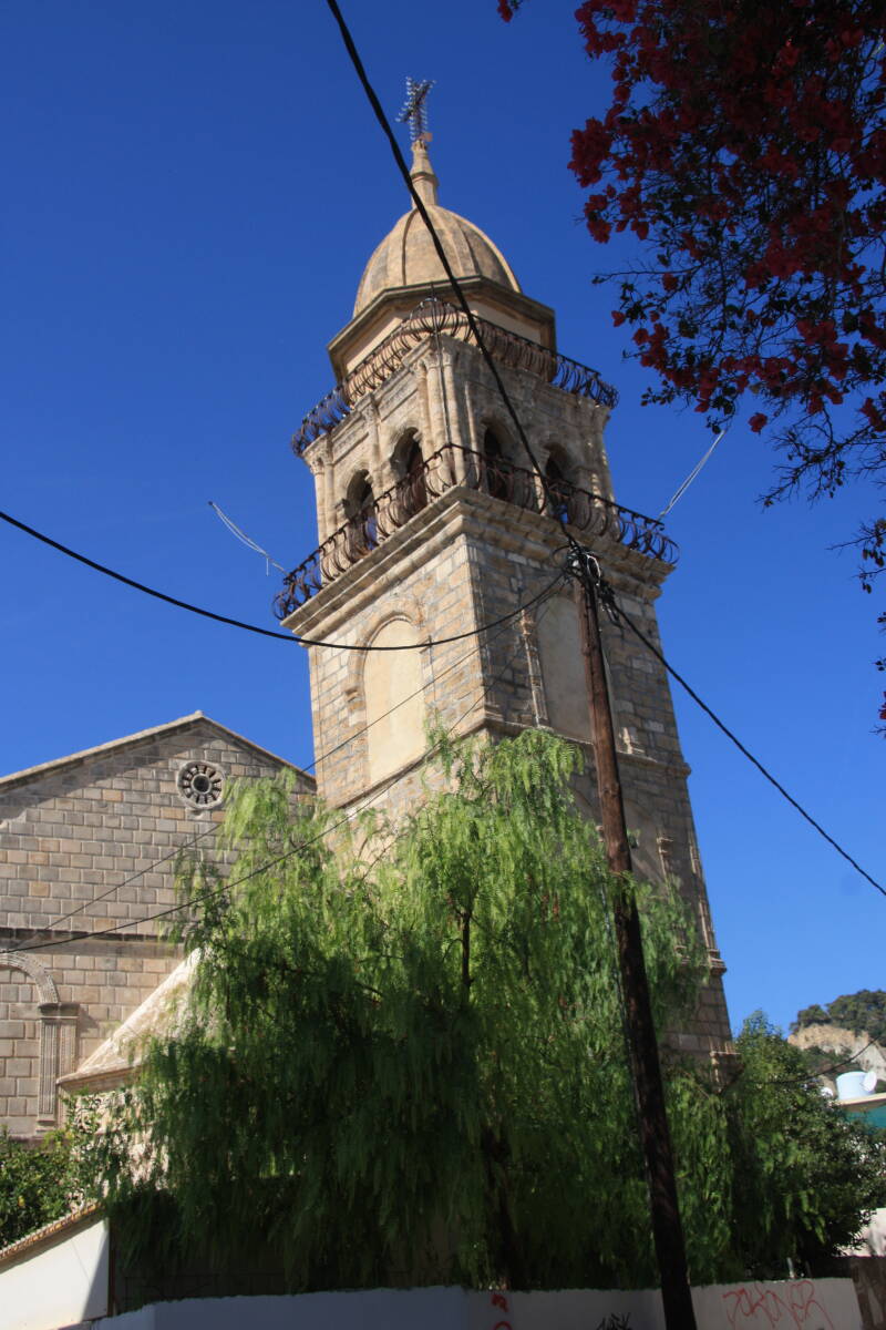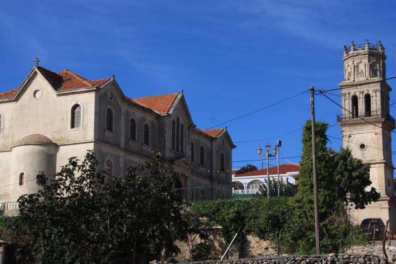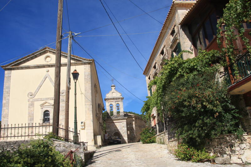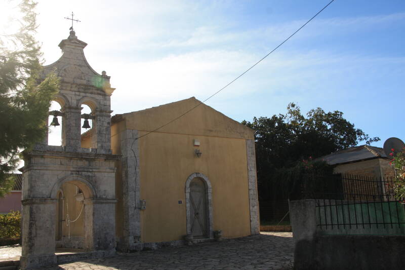 Ook deze kerk bleef gespaard bij de aardbeving en heeft daarom nog steeds de originele decoraties op de ramen en het zuilenportaal. Bijzonder is de gebeeldhouwde iconstase en de houten priesterstoel. In de kerk hangt ook een icoon van Maria die in de piratentijd uitkomst bood: zij zorgde ervoor dat het dorp in de mist werd gehuld als de zeerovers naderden. Maar in het toeristische hoogseizoen mist het nooit...