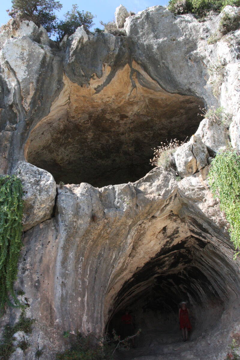 Als je de afslag neemt naar Damianos Cave, daalt de route af naar de westkust van Zakynthos met zijn prachtige witte kliffen. Aan de voet van de kliffen is een grot met twee verdiepingen vol stalgtieten en stalagmieten gevormd.