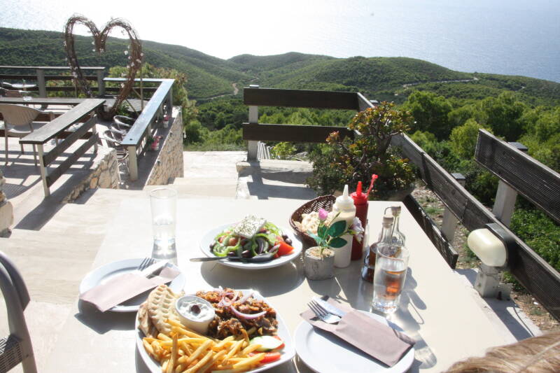 De plek wordt veel bezocht voor het uitzicht op de Ionische zee bij zondersondergang, zelf waren we hier te vroeg om dat te zien.