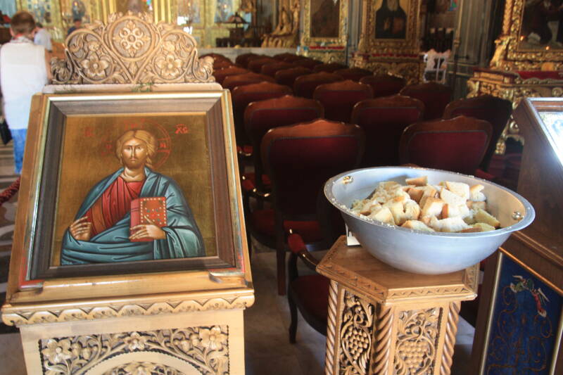 Achterin de kerk is een museum met iconen en andere kerkschatten.