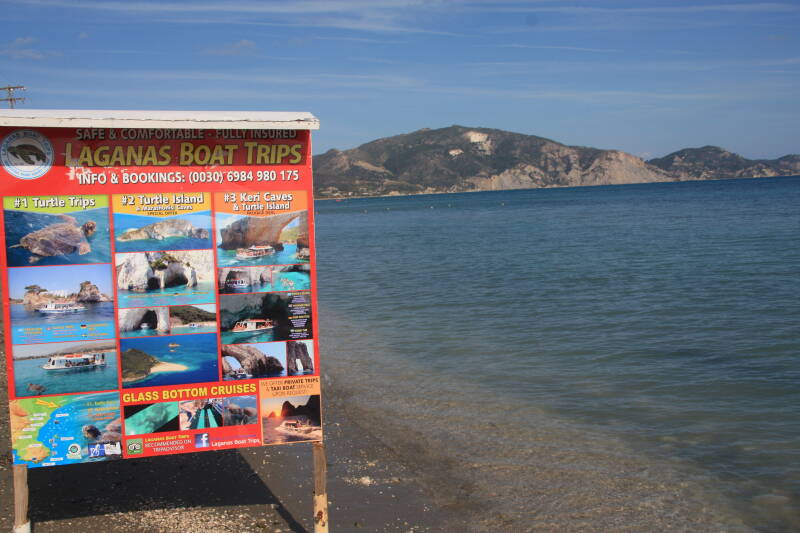 Vanaf o.a. Agios Sostis en Laganas varen er in de zomer toeristenbootjes naar deze grotten waar de toeristen mogen zwemmen. Bij de steile kliffen is een smal strandje waar je naartoe kunt zwemmen en naast dat strand zijn de zeegrotten.