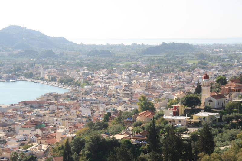 Het eiland telt slechts één stad en die heet ook Zakynthos, met voor de duidelijkheid de toevoeging 'stad' achter de naam.