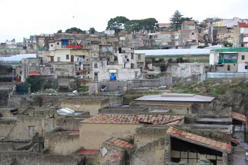 Nu vormt dat echter tegelijkertijd een groot probleem, het naar boven gehaalde materiaal wordt weer blootgesteld en zuurstof en weer en wind. Na de opgravingen werd ook het verval van de schitterend bewaard gebleven antieke ruïne, fresco's en mozaiëken in gang gezet. Een deel van het oude Herculaneum (zeker tweederde) ligt vandaag de dag nog steeds onder de grond, de opgravingen gaan door. Het is bijzonder om het nieuwe Ercolano Scavi zo boven te resten van de antieke stad te zien liggen.