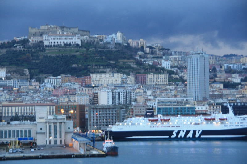 Eén opvallend kenmerk voor Napels, zoals de Scheve Toren in Pisa of de Eiffeltoren in Parijs, is hier niet te echt te vinden. Op die functie mag hoogstens de fraaie ligging in de baai van Napels én de Vesuvius aanspraak doen. Helaas ligt de top vandaag de hele dag in de wolken.