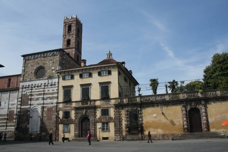 Met de trein vanuit Pisa sta ik in een half uurtje voor de vrijwel ongeschonden 16e eeuwse stadsmuur. Lucca is helemaal omringd door een 4 km lange middeleeuwse muur die nooit is aangevallen zodat ze nog in perfecte staat is. Op regelmatige afstand van elkaar staan elf bastions en zes poorten.