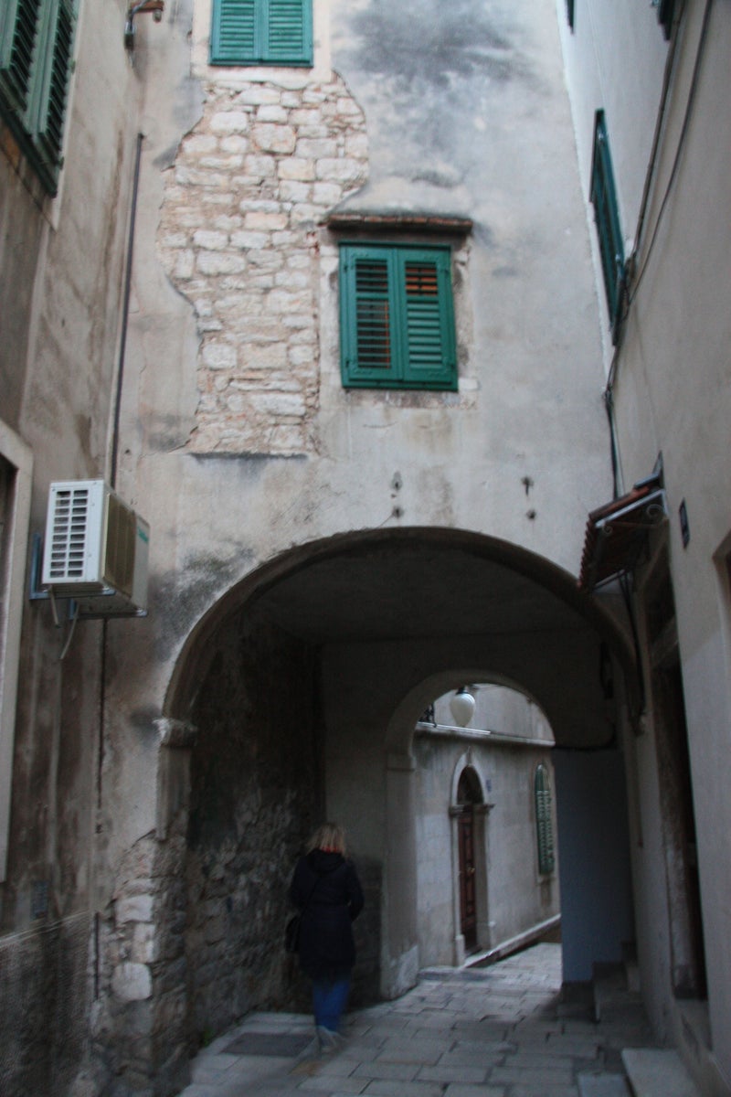 Vanaf het vliegveld in Zadar is er bij iedere binnenkomende vlucht een busverbinding naar het busstation. Daar hoeven we niet lang te wachten op de volgende bus naar Split. Met meer dan 220.000 inwoners is dit na hoofdstad Zagreb de tweede stad van het land. Het is een schitterende route langs de kust, de rit van een kleine 3 uur duurt bijna te kort. Met deze uitzichten is het zeker geen straf om met de bus door Kroatië te trekken. Als we aan komen rijden is het eerste beeld op de stad niet erg veelbelovend, met het zicht op industriële complexen en de lelijke, hoge flats die in het oude, socialistische Joegoslavië zijn gebouwd. Maar al wandelend van het busstation naar het appartementje midden in het historisch centrum moet dit beeld al gauw bijgesteld worden. Het centraal station van de intercitybussen ligt pal aan de kade voor de boulevard waar je in de verte uitkijkt op de westelijke punt van het schiereiland met als groene long het grote park Marjan op de heuvel. Maar zover hoeven we niet te lopen, direct aan de havenboulevard staat nog altijd een groot deel van het oorspronkelijke paleis overeind. Het leuke eraan is dat het al zeventien eeuwen lang gewoon in gebruik is als woonwijk. Daardoor is binnen de oorspronkelijke paleismuren een levendige mix aan gebouwen en gebruiksfuncties ontstaan die uniek is in Europa. Er wonen nog altijd zo'n drieduizend mensen in de oude stad te midden van eeuwenoude zuilen, bogen en gewelven. Deze gehele historische binnenstad staat op de werelderfgoedlijst van Unesco.