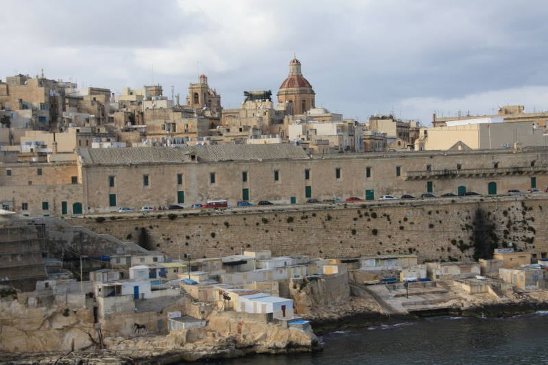 Erg jammer is dat de mooie stad zo ingebouwd ligt in het stedelijke gebied. De hele kust is hier volledig bebouwd en de voorsteden zijn helemaal aan elkaar gegroeid. De route van st Julians naar de hoofdstad is dan ook niet bepaald interessant, langs bedrijventerreinen en flatgebouwen door de lelijke, drukke straten van Sliema bereiken we Valletta. Om een stuk af te snijden nemen we soms de veerpond vanuit Sliema. Vanaf het water is er een mooi uitzicht op de Grand Harbour en de indrukwekkende vestingsmuren.