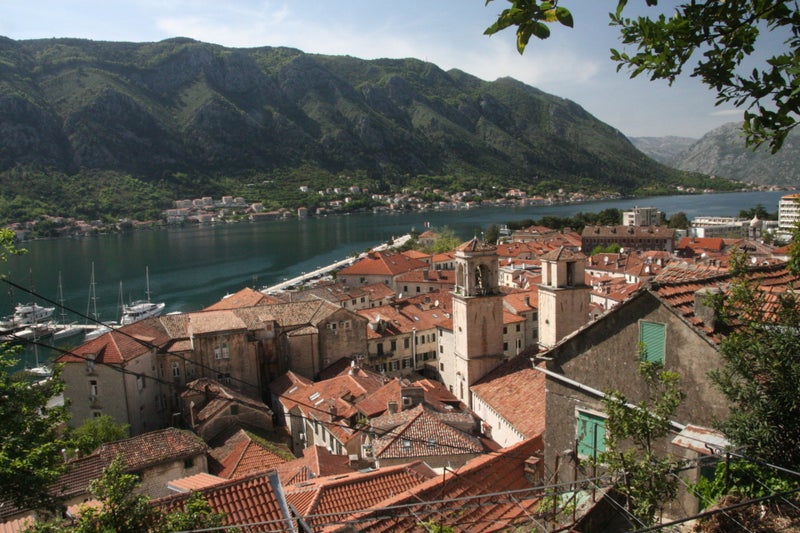 Tegen de bijna loodrecht omhoogrijzende rotsen van het Lovcen massief ligt de havenstad Kotor. Tijdens de middeleeuwen toen Kotor op het hoogtepunt van zijn ontwikkeling was, begon men met de bouw van de nog steeds indrukwekkende stadsmuren. De driehoekige stadskern en de berg Sv Ivan worden omgeven door een muur die 5km lang is en tot wel 15m dik op sommige plaatsen. Op de top van Sv Ivan troont een vesting. Vele aardbevingen hebben de baai van Kotor getroffen, maar steeds weer werd de stad opgebouwd. In de pittoreske oude stad met zijn middeleeuwse aanzicht, is de kathedraal de belangrijkste bezienswaardigheid.