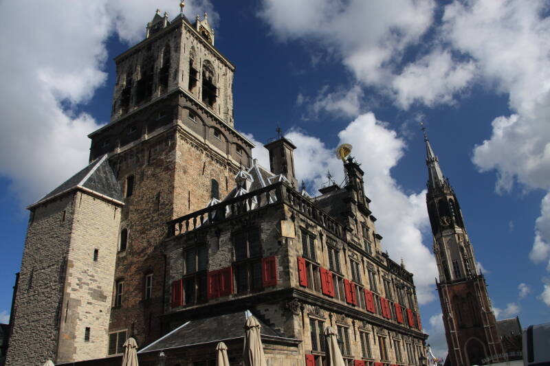 Midden op de Grote Markt van Delft staat het stadhuis naast De Nieuwe Kerk die boven alle andere gebouwen uit torent. De kerk is vooral bekend omdat er de grafkelder van het koninklijk huis te vinden is. In de grafkeldelder liggen zo’n 45 leden van het Huis van Oranje begraven. Ook het praalgraf van Willem van Oranje is een bekende bezienswaardigheid die in de Nieuwe kerk te vinden is. Op het praalgraf is Willem van Oranje op zijn doodsbed afgebeeld.