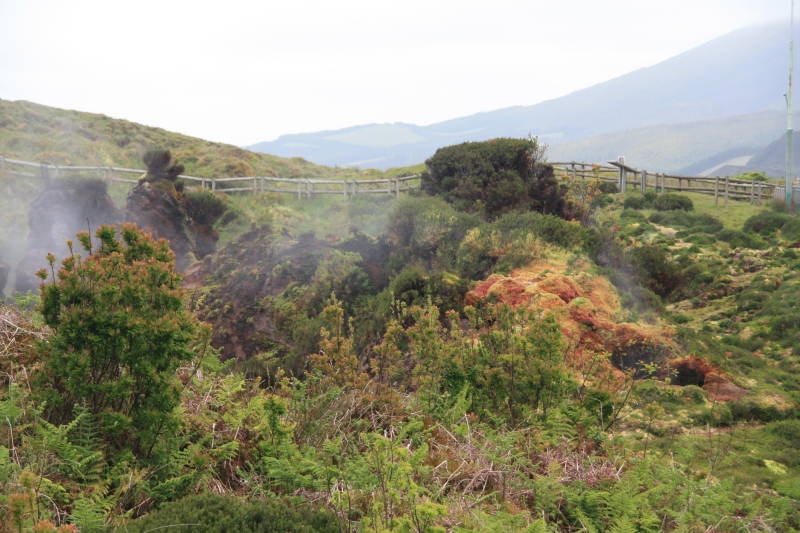 Het blijft een apart gezicht om bij Furnas Enxofre de stoom uit de grond vanuit de binnenkant van de aarde te zien ontsnappen.
