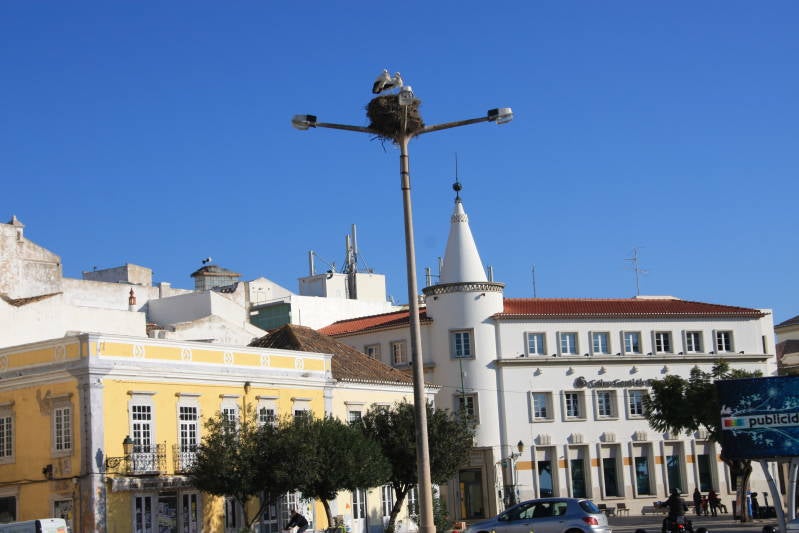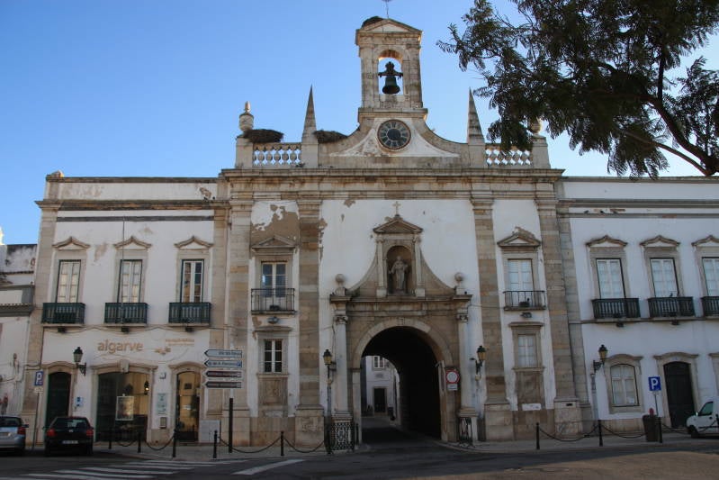 Bij het plein staat de Arco da Vila, de in 1812 gebouwde stadspoort die de entree vormt naar de Vila Adentro. Als je onder de stadspoort door loopt, zie je aan de rechterkant op het hek nog een uniek restant van de Moorse muren waarop diverse ooievaars nestelen.