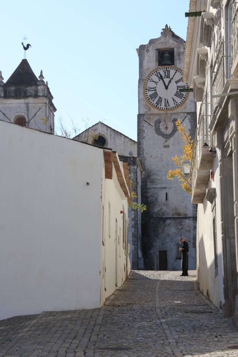Even verderop in de oude stad komen de smalle straatjes uit bij de catedral da sé, de plompe vierkante toren biedt wederom een goed fundement voor het onderkomen van een ooievaarsgezin.