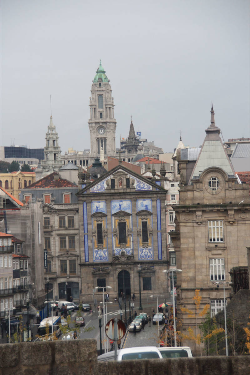 Vanaf de Praca da Liberdade leidt de Rua dos Clerigos omhoog naar de gelijknamige kerk. We zijn steeds van plan geweest om de 225 trappen van de toren te gaan beklimmen, maar het is er niet meer van gekomen. Nu blijkt de grijze granieten 76 meter hoge torre gesloten. Ooit was dit Portugals hoogste gebouw en nog steeds staat de Torre Dos Clerigos symbool voor Portugal.