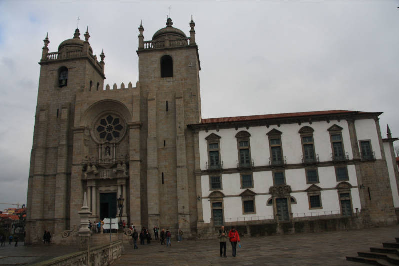 Het massieve bouwwerk van de Sé (kathedraal) verrijst boven op de heuvel. De twee identieke klokkentorens zijn gebouwd van het grijze graniet dat veel voorkomt in Noord-Portugal.