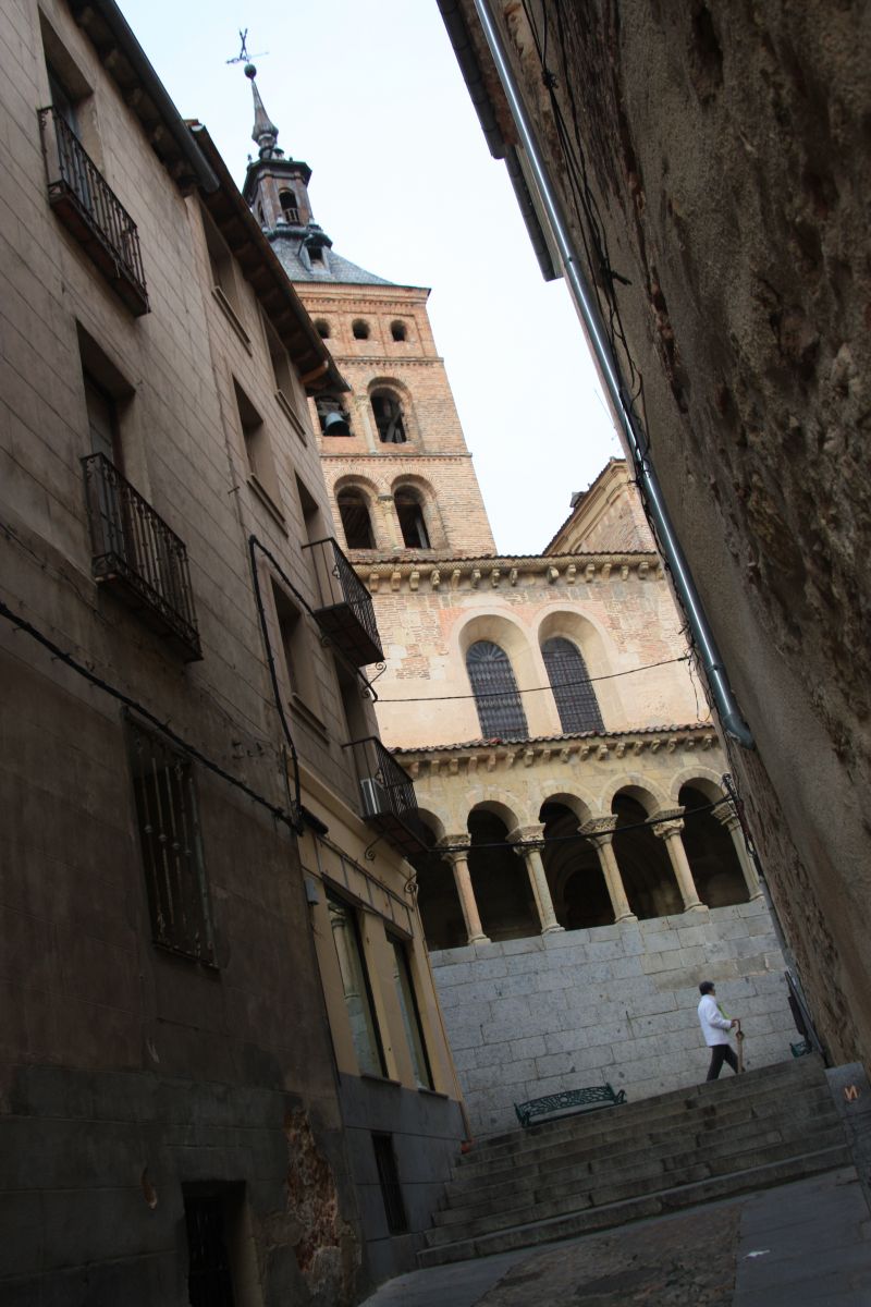 De oude binnenstad van Segovia vraagt om een grondige verkenning, dus bewapend met plattegrond begeven we ons op weg naar de achterafstraten met kerken, torens en herenhuizen. Centrum van de oude stad is natuurlijk het Plaza Mayor, dat zoals het hoort van arcades is voorzien en veel terrassen en cafe's telt. Het Plaza wordt gedomineerd door de enorme, ritmische kolos van de flamboyante gotische kathedraal.