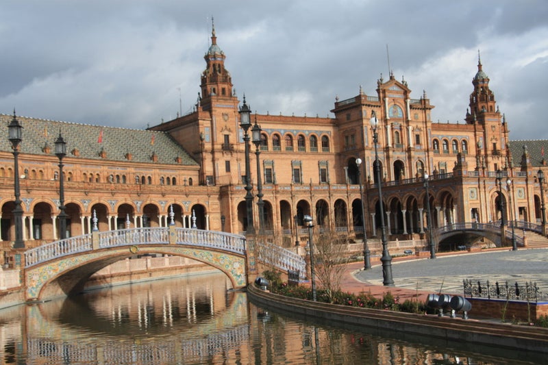 Een ander symbool van Sevilla is het Plaza de España, een halvemaanvormig plein in het Maria Luisa park. De halve circel wordt omringd door een magnefiek gebouw rond een grote fontein en kanaaltjes met bruggetjes. De basis van het gebouw is onderverdeeld in 58 tegelmozaieken die de Spaanse provincies vertegenwoordigen en fresco's van historische gebeurtenissen laten zien in de azulejo's.